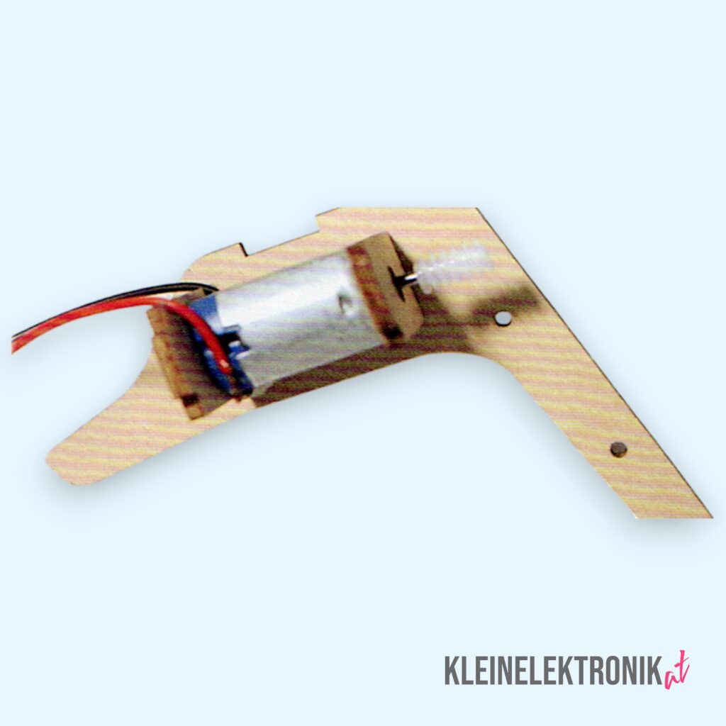 - Setze die obere Holzplatte auf, um den Motor zu fixieren.