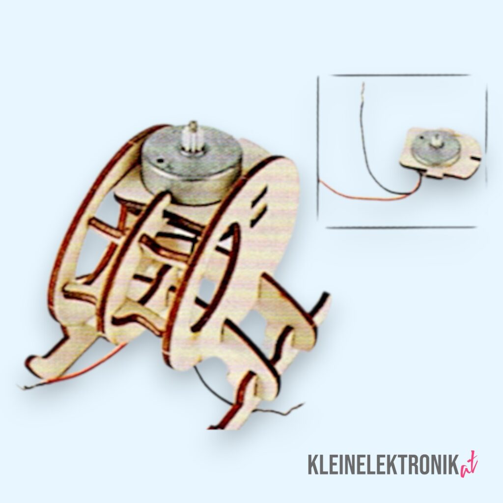 - Nimm den Motor und das Zahnrad. Setze das Zahnrad auf die Motorachse und platziere den Motor in der Halterung im Inneren des Rahmens.